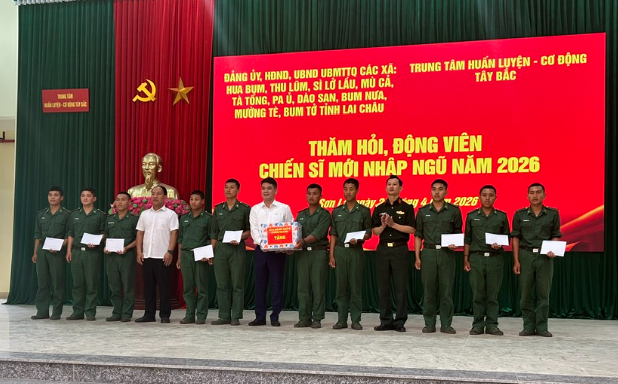 Lãnh đạo Đảng ủy - HĐND - UBND - UBMTTQVN xã Thu Lũm thăm, hỏi, động viên chiến sỹ mới nhập ngũ năm 2026 tại Trung tâm huấn luyện - cơ động Tây Bắc