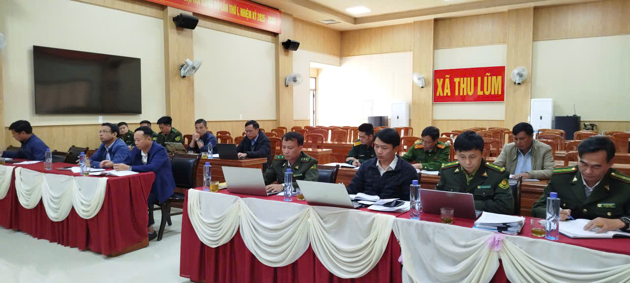 Theo báo cáo, Hiện nay tổng diện tích tự nhiên của xã Thu Lũm là 25.155,10 ha. Diện tích có rừng: 20.877,56 ha (rừng phòng hộ: 17.592,98 ha, rừng sản xuất: 3.070,81 ha, rừng mục đích khác 223,77). Tỷ lệ che phủ rừng đạt 83,04 % . Trên địa bàn xã, các khu vực có nguy cơ cao về phá rừng và khai thác lâm sản trái phép chủ yếu tập trung tại khu vực giáp ranh biên giới, đặc biệt là khu vực mốc 17, mốc 18. Các địa bàn tiềm ẩn nguy cơ cháy rừng cao gồm các bản: Mé Gióng, Tù Nạ, Nhù Te, Lé Ma, Là Ú Cò, I Ka Đa, A Chè, Còong Khà, Là Si. Xã Thu Lũm kịp thời kiện toàn 01 Ban chỉ huy PCCCR cấp xã gồm 44 thành viên, kiện toàn 17 tổ chuyên trách BVR tại 17/17 bản với 170 người tham gia, tổ chức họp dân tại các bản được 17 buổi tại 17/17 bản với tổng số 1.201 lượt người. Ban Chỉ huy PCCCR xã chỉ đạo thực hiện tốt quy chế phối hợp giữa các lực lượng Công an xã, Kiểm lâm, Quân sự, các Đồn Biên phòng, tổ chuyên trách BVR-PCCCR tuần tra, kiểm tra rừng trên địa bàn 10/17 bản được 10 đợt = 60 lượt người tham gia. Tai buổi làm việc sau khi nghe báo cáo của xã Thu Lũm, các đại biểu đã thảo luận về quy chế phối hợp liên ngành trong công tác PCCCR. Hiệu quả của công tác tuyên truyền bảo vệ rừng trên địa bàn xã, cần đưa nội dung tuyên truyền sát thực tế. Phải thống nhất đầu mối, người chịu trách nhiệm báo cáo…