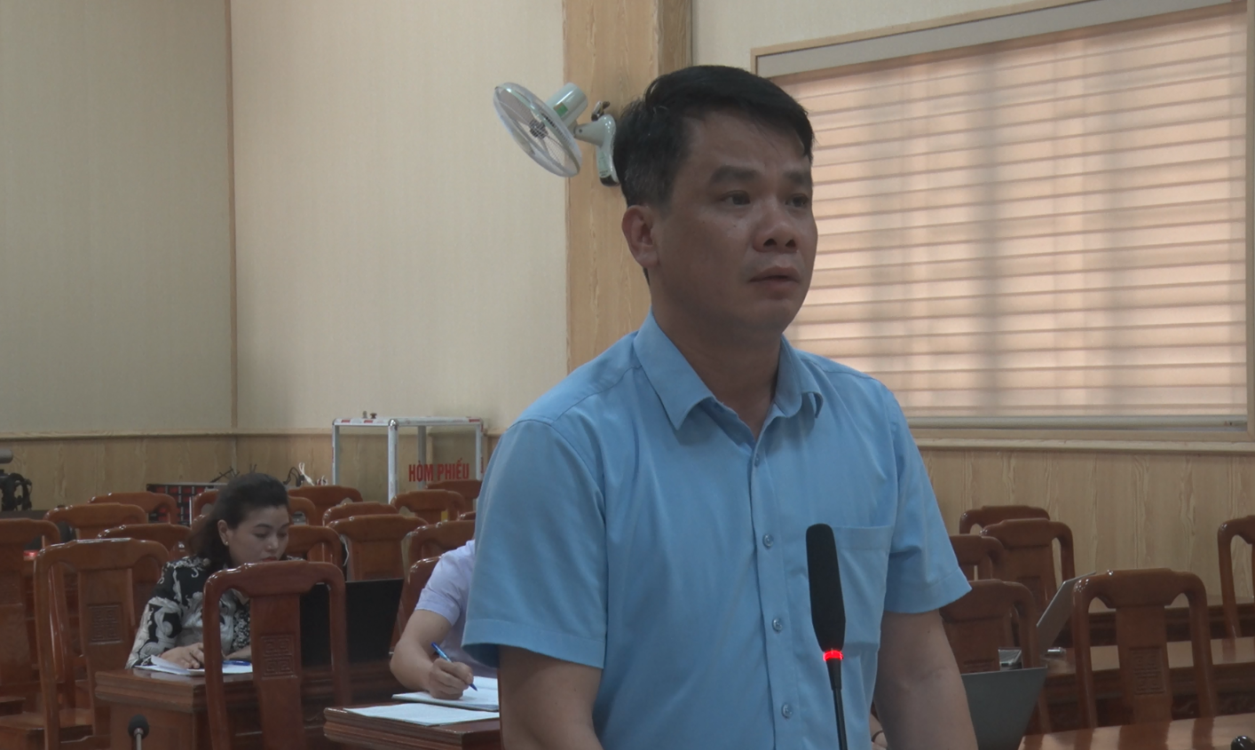 Đồng chí Lê Thanh Tâm - Phó Bí thư Đảng ủy - Chủ tịch UBND xã Thu Lũm phát biểu thảo luận tại hội nghị