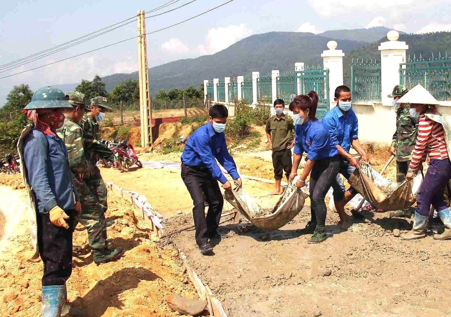 Các đoàn thể và người dân xã Thu Lũm tham gia làm đường giao thông nông thôn, tạo điều kiện cho người dân phát triển kinh tế.