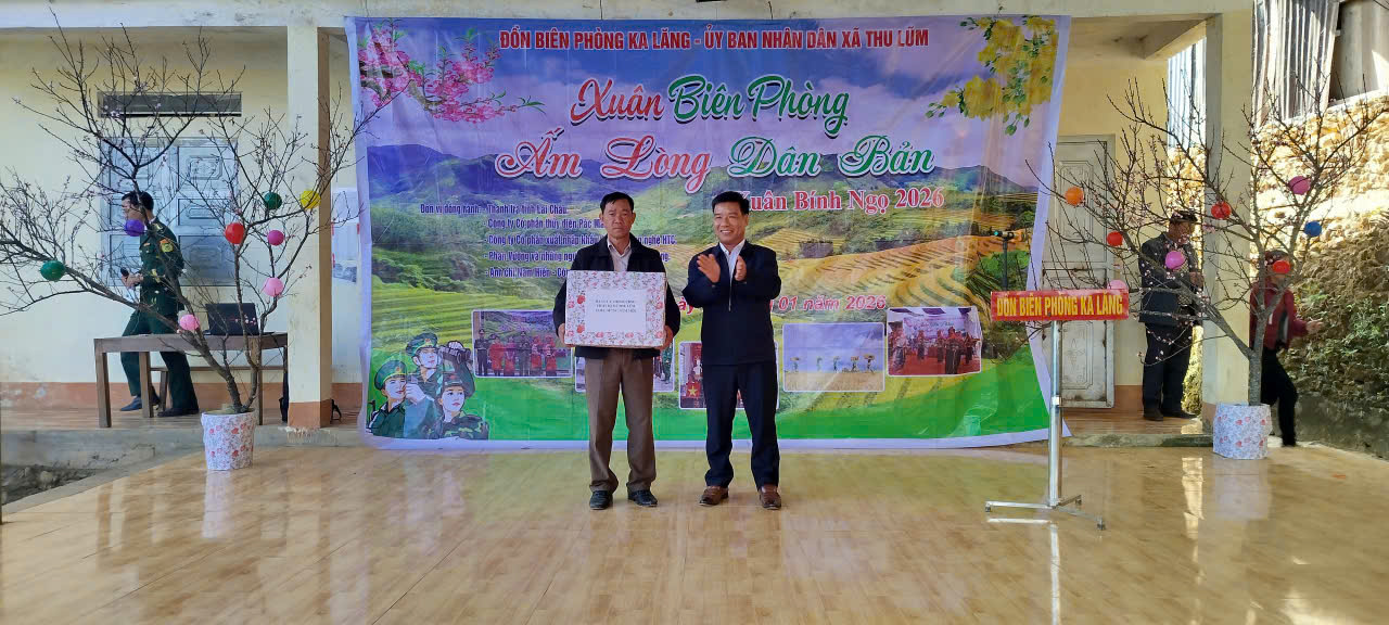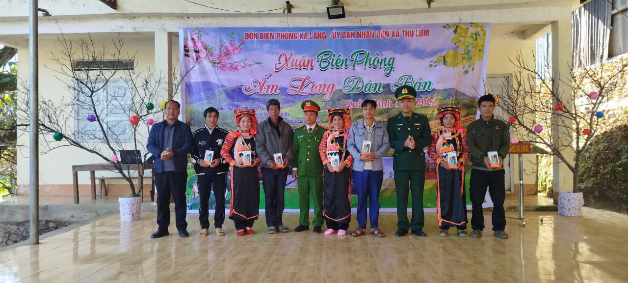 Ngày 27/1, tại bản Ka Lăng, Đồn Biên phòng Ka Lăng phối hợp với UBND xã Thu Lũm tổ chức Chương trình “Xuân Biên phòng ấm lòng dân bản". Tham dự Chương trình có đồng chí Lý Chùy Hừ - UVBCH đảng bộ - Phó Chủ tịch UBND xã; đồng chí Lỳ Pó Chừ - UVBTV - Chủ tịch UBMTQVN xã; đồng chí Hoàng Xuân Dũng - UVBTV - Phó Chủ tịch HĐND xã cùng đại diện lãnh đạo các cơ quan, đơn vị thuộc xã; cán bộ, chiến sĩ Đồn Biên phòng Ka Lăng và đông đảo bà con nhân dân bản Ka Lăng.