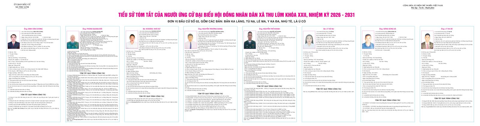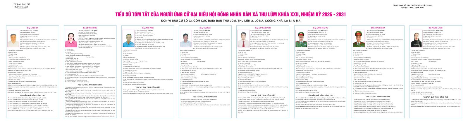 Công bố danh sách chính thức những người ứng cử đại biểu Hội đồng nhân dân xã Thu Lũm khóa XXII, nhiệm kỳ 2026 - 2031 theo từng đơn vị bầu cử