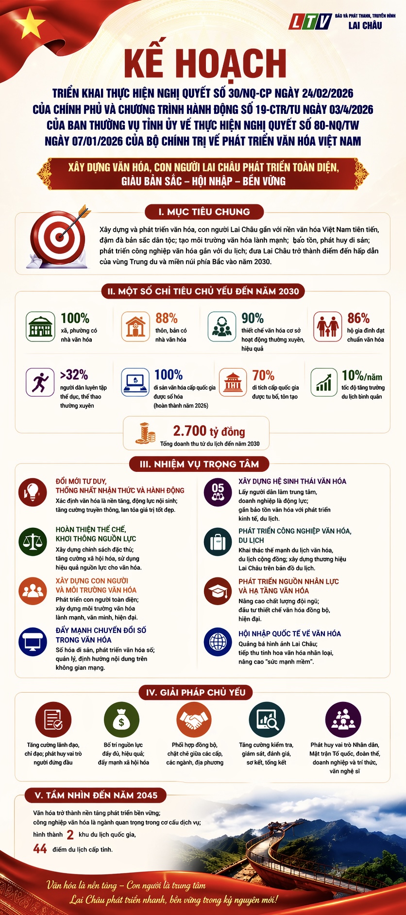 Với quyết tâm chính trị cao, địa phương hướng tới xây dựng môi trường văn hóa lành mạnh, phát huy bản sắc các dân tộc, đồng thời khơi thông nguồn lực, thúc đẩy du lịch và công nghiệp văn hóa, từng bước đưa Lai Châu trở thành điểm đến hấp dẫn của khu vực Trung du và miền núi phía Bắc.