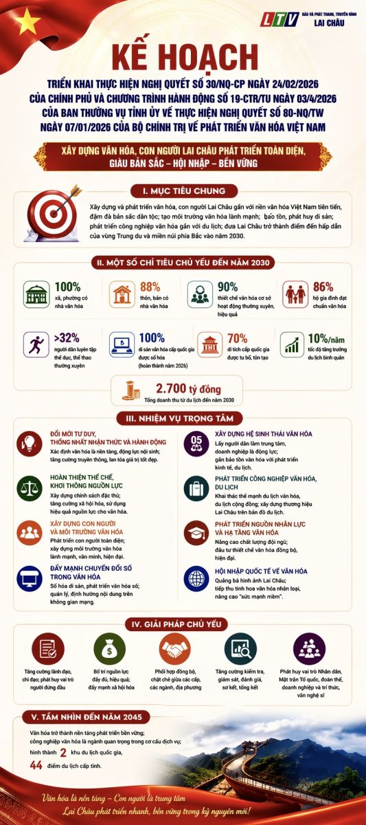 Trong bối cảnh cả nước đang đẩy mạnh thực hiện Nghị quyết số 80-NQ/TW, tỉnh Lai Châu đã cụ thể hóa bằng kế hoạch số 2831/KH-UBND tỉnh ngày 16/4/2026 nhằm triển khai đồng bộ, toàn diện, gắn phát triển văn hóa với con người và yêu cầu phát triển bền vững.