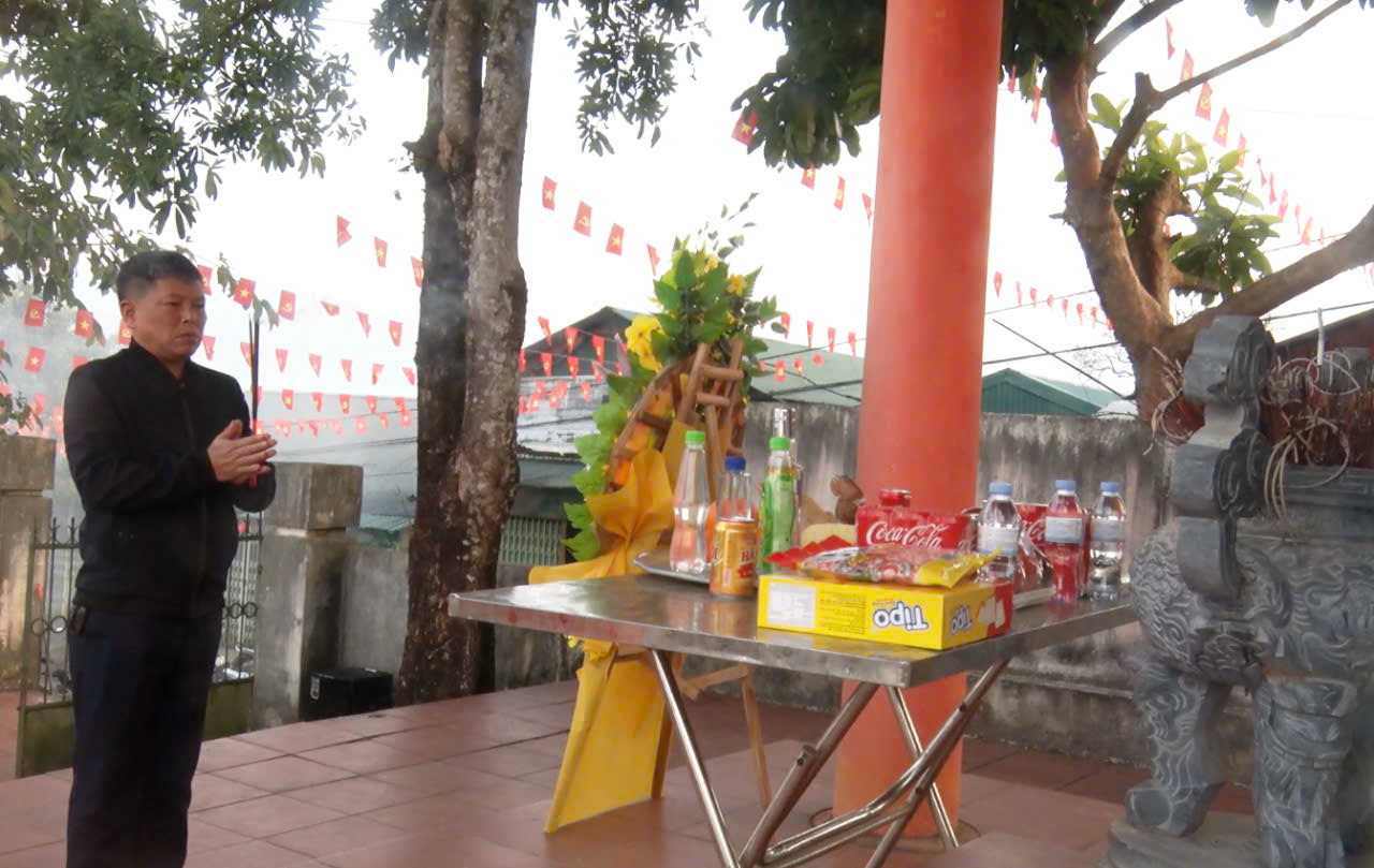 Đồng chí Nguyễn Trường Giang - Bí thư Đảng ủy - Chủ tịch HNND xã dâng hương tại buổi lễ